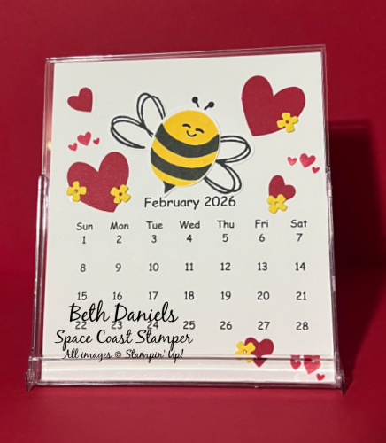 For this month’s calendar page I used Stampin’ Up’s Bee My Valentine stamp set and coordinating punch.